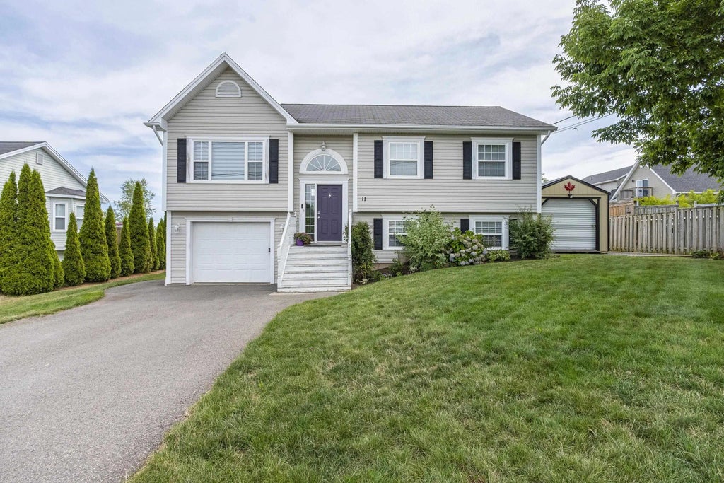 This stunning 4-bedroom, 2-bathroom split entry home is nestled in a desirable Kentville neighborhood. Boasting a brand new kitchen with quartz countertops, a spacious island, and top-of-the-line appliances, this home is perfect for those who love to cook and entertain. The main floor features an open concept layout encompassing the kitchen, dining area, and living room. Upstairs you will find three bedrooms with a cheater ensuite off the primary bedroom. The lower level has been tastefully renovated to include a second kitchen and family room, along with a fourth bedroom and second bathroom - ideal for use as an in-law suite option. The property also features heat pumps on both levels, each equipped with new motors for efficient heating and cooling. Outside, enjoy a 27-foot heated above-ground pool with a new pump, surrounded by a multi-level deck that is perfect for entertaining. A gazebo provides shade on hot summer days while the fenced yard offers privacy. Additional outdoor amenities include a garden shed and two outbuilding workshops - providing ample storage space or potential hobby areas. With the added bonus of an attached single garage, this home truly has it all for comfortable living and entertaining in style.