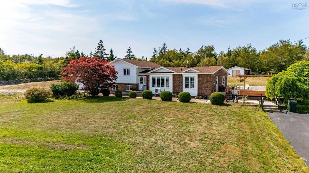 Discover coastal living just 20 minutes from Yarmouth in the historic fishing village of Wedgeport. This inviting 3-bedroom, 2-bath side split sits quietly off the road with stunning ocean views, a paved driveway, private backyard, mature landscaping, and a new deck with a pergola – perfect for outdoor entertaining. A 16’ x 24’ shed and an attached 1.5-car garage provide ample storage and convenience. Inside, enjoy a bright, open floor plan refreshed in the last 2-3 years, featuring beautiful hardwood and tile floors throughout. The kitchen showcases oak cabinetry, a striking quartz countertop, a farmhouse sink, and a tile backsplash. The dining area flows into a vaulted family room through French doors, creating a spacious, cohesive living space. Comfort is customizable with multiple heating options: an oil-fired hot water furnace, in-floor radiant heating on the main floor, and electric baseboard heaters in the bedrooms. Three heat pumps add efficient cooling and climate control, complemented by a wood-burning stove in the den for cozy evenings. A 200-amp electrical service powers the home and is wired for a generator, ensuring peace of mind during outages. More recent updates include a new 80-gallon hot water heater and a entirely new septic system. Energetic and family-friendly, this home is perfectly positioned near a brand-new French elementary school and just under 10 minutes to the English elementary school !