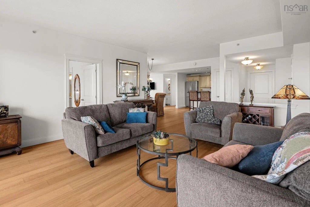 Spacious Corner Condo with Pond Views in Halifax! Welcome to this stunning 1,300 sq. ft. corner unit offering the perfect blend of comfort, convenience, and style. Featuring 2 bedrooms, 2 full bathrooms, and a versatile den/office, this home is ideal for professionals, downsizers, or anyone seeking a low-maintenance lifestyle with room to grow. The open-concept layout is bright and inviting, with a private balcony overlooking Hail Pond—perfect for morning coffee or evening relaxation. The primary suite includes a walk-in closet and ensuite bath, providing a true retreat within your home. Comfort is further enhanced with a geo thermal ducted heat pump and air conditioning, keeping your home efficient and comfortable year-round. Beyond your door, the building features a gym and a hair salon—both conveniently located on site but separate from your condo fees. Step outside and enjoy all that this neighborhood has to offer: Long Lake Provincial Park walking trails, Chocolate Lake for swimming and kayaking, and the Halifax Shopping Centre just minutes away. Public transit is close at hand, and downtown Halifax, with Citadel Hill and countless restaurants, is only a 15-minute drive. This is your opportunity to own a spacious, well-appointed corner unit in a prime Halifax location.