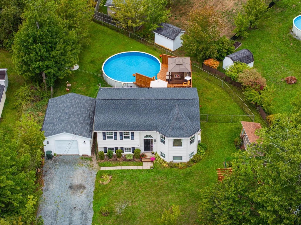 Spacious and inviting, this 4-bed, 2-bath home sits on a generous 17,636 sq ft lot with municipal services and features a veg garden, cherry, apple, plum, and grape vines. Inside, you’ll find beautiful hardwood floors, a bright living room with vaulted ceiling, and a handy back-entrance mudroom. One upstairs bedroom is currently designed as a custom closet/dressing room but can easily be converted back. The fully fenced backyard is perfect for outdoor living, complete with an above-ground pool, expansive deck, and cozy fire pit. A detached 1.5-car garage provides added storage and parking. Conveniently located with quick access to Highway 102, the airport, Halifax, shopping, and the East Hants Sportsplex, this property offers space, versatility, and excellent value—ready for your personal touch.