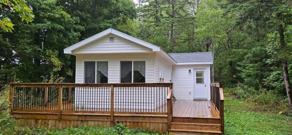 Tucked away in a peaceful, tree-lined setting, this fully renovated mini home with two permanent additions offers both comfort and convenience. Just minutes from Kentville and Coldbrook, with quick access to main highways, the location makes daily life a breeze while still feeling private and serene. Inside, the modern kitchen is sure to impress with its generous storage, nearly new appliances, and a sunny dining area surrounded by windows—the perfect spot to enjoy your morning coffee. The living room is spacious and welcoming, with plenty of room to arrange your furniture just the way you like it. Two cozy bedrooms and a full 4 pc. bath flow easily from the main living area, while a separate laundry/mudroom keeps things practical and organized, complete with a handy combo washer/dryer. Outside, the wraparound wooden deck invites you to relax and unwind, with convenient entry points into both the mudroom and the living room.