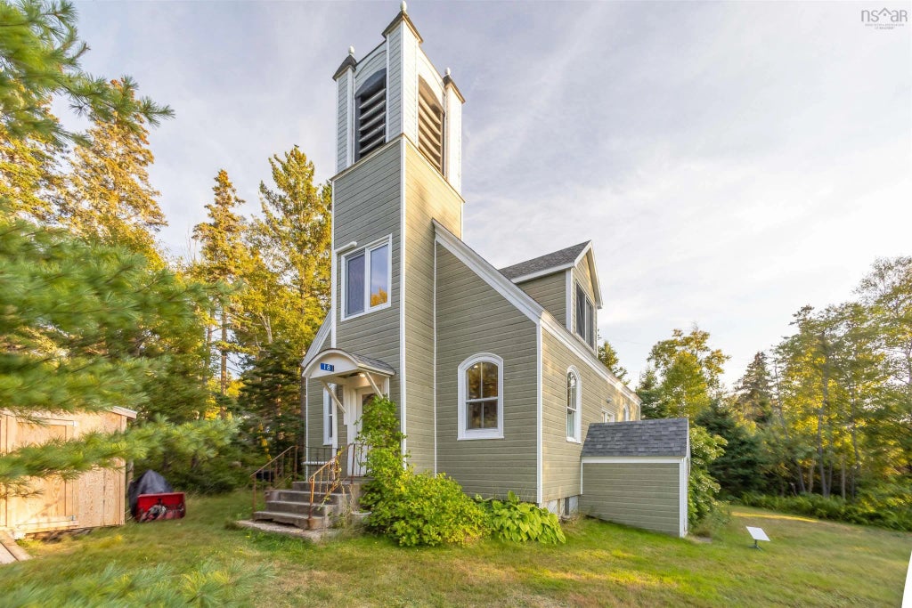 Located in Englishtown and just steps from the water, this one-of-a-kind property offers captivating views from every angle. From the side deck you can enjoy water glimpses, while sweeping vistas from the upstairs bedroom windows make this home truly special. Once an active church, the building has been thoughtfully reimagined into a stunning residence, seamlessly blending historic charm with modern comforts. The main floor showcases the original hardwood flooring and soaring ceilings, with tall windows that flood the open living area in natural light. Painted pine walls and ceilings create a warm, welcoming ambiance, while the former altar has been transformed into an inviting sitting and entertaining space. Off the main living area, the kitchen features efficient design and open shelving. Upstairs, the primary bedroom enjoys expansive water views through the large polytech tilt & turn windows. The spa-like bathroom offers a deep soaker tub and stand-up shower, while an adjoining versatile room provides the option for an office, reading nook, or walk-in closet. The home is comfortably heated with electric baseboards, heat pumps on both levels, and a cozy pellet stove in the living room. The unfinished basement, with concrete floors and a walkout, houses the utilities and provides ample potential for future development. Since 2000, the property has seen extensive upgrades including a full re-wire and 200-amp service, upper-level bedroom construction, new windows throughout, multiple heating systems, updated siding, blown insulation throughout and a newly re-shingled roof in 2024. A truly unique property offering character, history, and modern living, all within a convenient location: only 20 minutes to Baddeck, 30 minutes to North Sydney, and just 7 minutes to Highway 105. You will not want to miss your chance at this unique and beautiful offering.