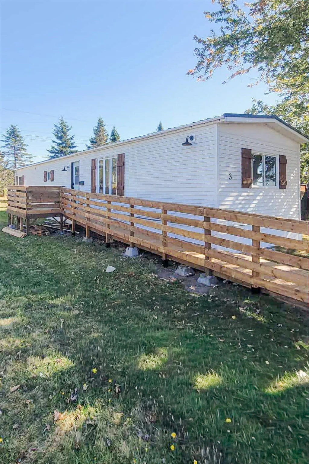 Step into comfort and contemporary living with this beautifully renovated three bedroom mini home, where every inch has been thoughtfully upgraded to offer a truly move in ready lifestyle. Whether you're a first-time buyer, looking to downsize, or searching for a low-maintenance home you'll find everything you need right here. Relax in the fully updated bathroom, featuring a granite-top vanity, lighted and heated mirror, elegant tile tub/shower surround, and modern fixtures all designed for everyday luxury and comfort. Cook and entertain in a beautifully redone kitchen, complete with soft-close cabinetry, stainless steel appliances, and sleek, contemporary finishes that perfectly blend style and functionality. Enjoy peace of mind and eye-catching curb appeal with exterior upgrades including a brand-new metal roof, new gutters and skirting, a freshly painted exterior, and an updated deck and trimall designed for long-lasting performance and charm. Inside, the home boasts fresh paint throughout, all new interior and closet doors, modern hardware, and stylish trim. Major systems have been updated too, with new PEX plumbing, brand-new baseboard heaters, and energy-efficient lighting throughout.This home has been fully redone and beautifully finished, just unpack and start enjoying the modern comfort you've been waiting for!