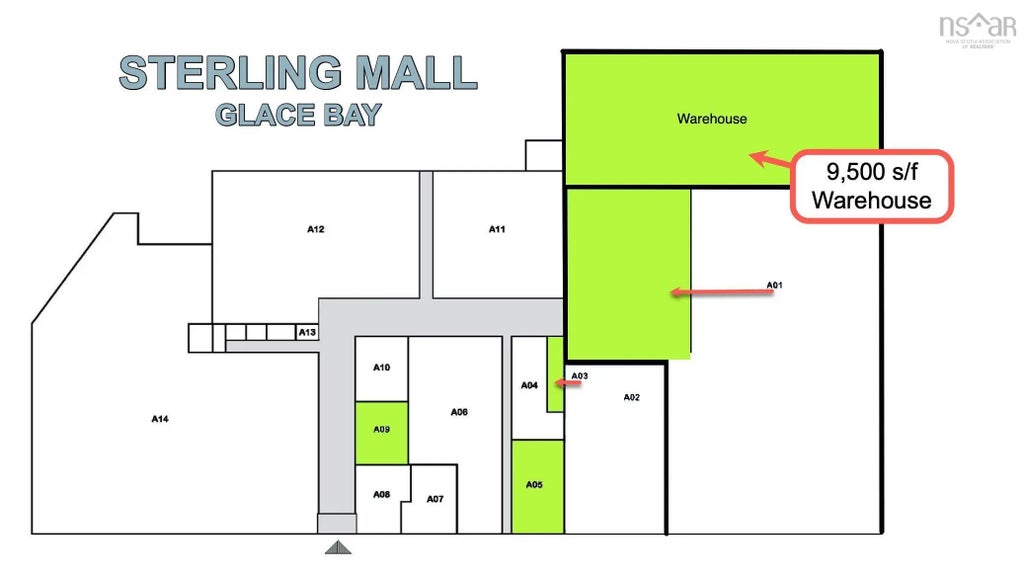 Need space for your expanding business or distribution centre? Take advantage of 9,500 square feet of warehouse space ready for your retail, production or activity-based business, such as a gym or studio. This site is situated behind Sterling Mall in a high-traffic, high-visibility, and easily accessible location. There is ample paved parking for customers and employees. The warehouse is surrounded by a gated fence providing a vast area for secure parking and storage. There are three 11’ wide by 17’ high automatic overhead doors. Lease one warehouse bay or all three.