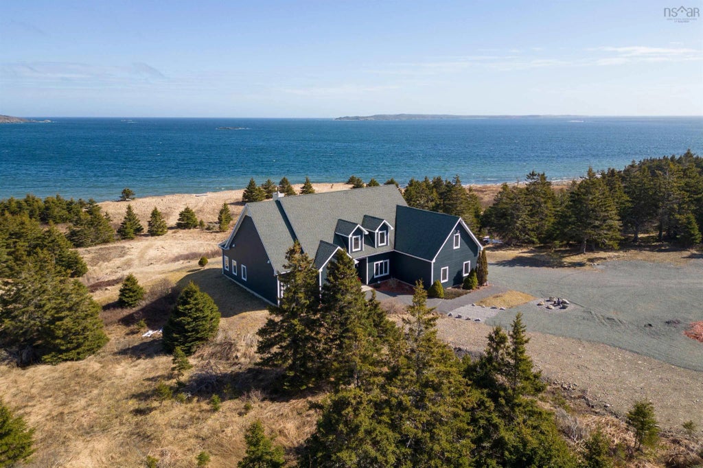 This stunning oceanfront property boasts a tranquil location with breathtaking views of the sparkling waters and serene coastline. The layout of this home is ideal for entertaining with spacious living areas that flow seamlessly making gatherings enjoyable and effortless. The living room boasts a cathedral ceiling creating an open and airy atmosphere adding an element of grandeur and sophistication. The primary bedroom with ensuite ensures convenience along with walkout access to the deck which provides luxurious and relaxing retreat. Completing the main level is a spacious bedroom or could be utilized as a home office along with a half bath and laundry room conveniently located near the main living areas. As you ascend to the upper level you will find three additional bedrooms each spacious and well appointed. The full bath on this level provides convenience for family and guests. This property truly epitomizes a luxury costal living at its finest.