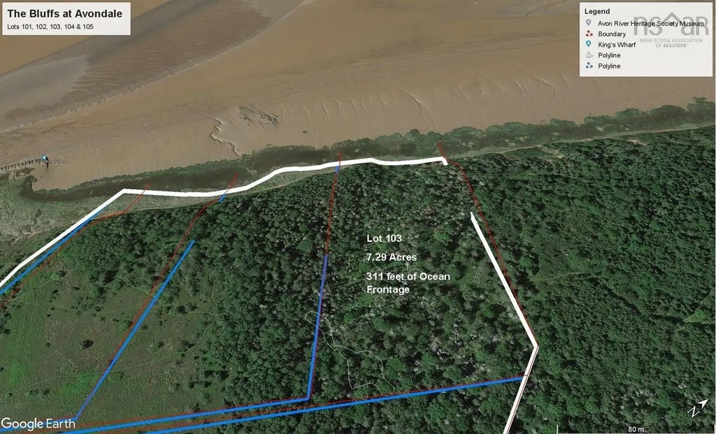 Welcome to The Bluffs at Avondale! This oceanfront lot is 7.29 acres with 311 feet of frontage and offers spectacular views of the worlds highest tides and the setting sun. Zoning allows for 2 homes plus potentially two secondary living units per lot (Buyer to confirm). This lot is partially field and partially wooded and has a QP septic report done already (C2). This is a rare opportunity to own a lot near the Avondale Waterfront and is located less than a 5 minute walk to the public boat launch and the many annual festivals at the Avondale Wharf and community space. The award winning Avondale Sky Winery is less than a 10 minute walk from the property. Experience peaceful country living with town amenities just a 15 minute drive away in Windsor and a moderate 45 minute drive to Halifax. Shared laneway to lot line.