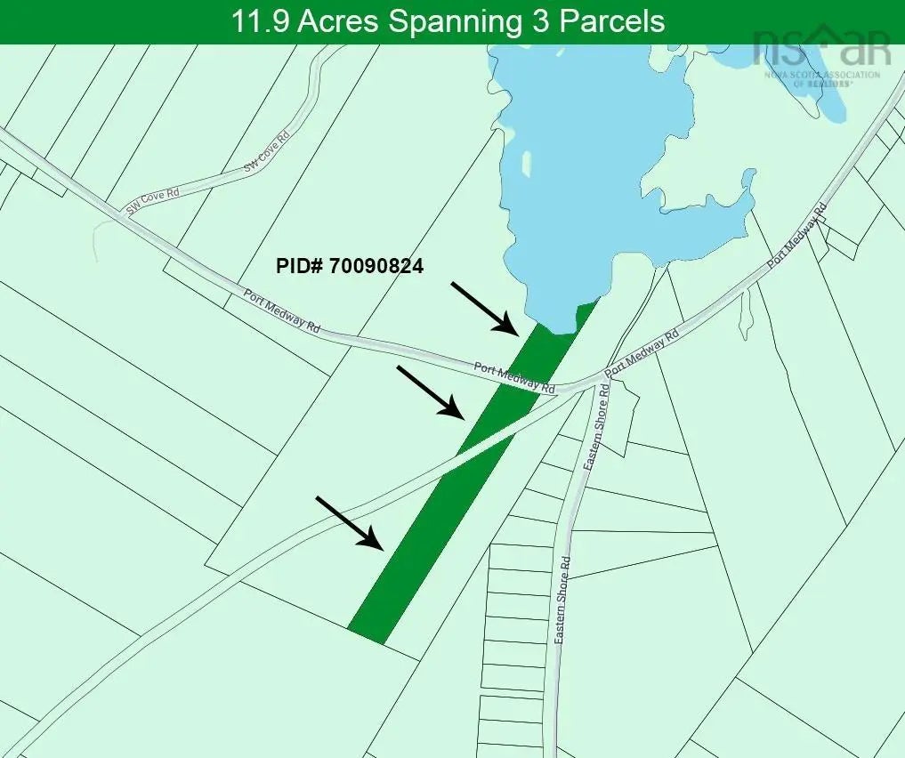11.9 acres spread over three separate parcels in the picturesque South Shore Nova Scotia community of Port Medway, a charming and historic village that originally thrived on shipbuilding, but to this day remains a working fishing port. A new owner may wish to subdivide the three distinct parcels that constitute the single PID #, creating acreage (roughly 7.5 acres +/-), a smaller lot (approx. 2 acres +/-) bordered by Port Medway Road and Old Port Medway Road, plus ocean frontage, also in the 2-acre range. Please note that these sizes are estimates only as no surveying or migration has been done. The calmer waters of Southwest Cove are ideal for a future dock from which to launch nautical adventures of all types. The greater Port Medway region is already known as one of the best locations in Nova Scotia for sea kayaking, plus there is quick access to the open Atlantic Ocean and beyond! The area’s spectacular geography is home to two nearby conservation areas that protect distinct habitats of bird, sea and wildlife. The small islands that dot the cove and nearby waters provide stunning and ever-changing views from a seasonal or year-round dwelling.