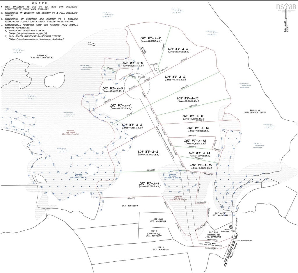 42 Acres of private peninsula oceanfront land in Lower East Chezzetcook. Eight numbered PIDs, ocean front parcels, surveyed in 1884 with access to the East Chezzetcook Road. These ocean front lots could be subdivided to offer additional subdivision potential, (as of right); 15 purposed ocean front lots, depending on septic system suitability, with no Development Agreement requirements. Within level walking distance to sandy Lower East Chezzetcook Beach and surfing. All this and more just 30 minutes to Dartmouth and 45 minutes in the Halifax International Airport.