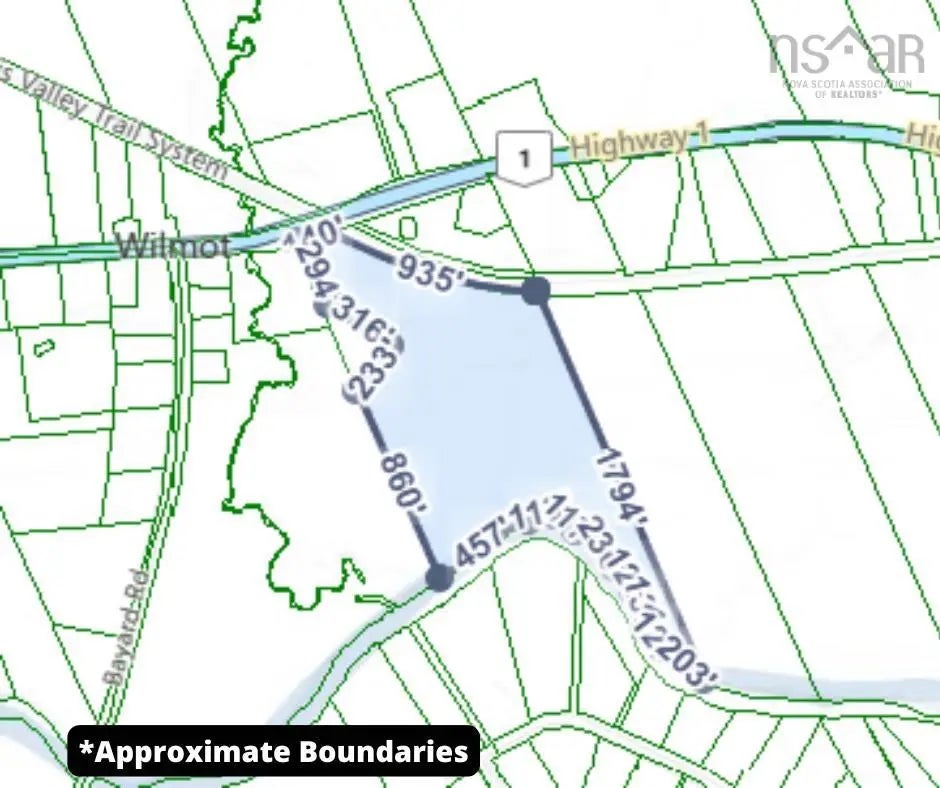 An exceptional opportunity for the discerning investor—this 25.95-acre parcel in Wilmot offers over 1,500 feet of Annapolis River frontage, a rare and valuable feature with strong appeal for future development or private use. The land presents a versatile mix of open fields and mature woodland, offering multiple options for subdivision, recreational development, eco-tourism ventures or a secluded estate property. With convenient road frontage on Hwy 1 and proximity to local amenities, access and visibility are excellent—ideal for a potential campground, retreat or other income-generating project. The Annapolis River itself provides a year-round attraction for boating, kayaking, canoeing, tubing and fishing—making this site especially suited for tourism, lifestyle-oriented buyers or value-add land holding. An on-site shed is included for storage or project staging. With waterfront land becoming increasingly scarce, this is a smart acquisition for investors seeking long-term appreciation, development potential or a unique lifestyle asset in Nova Scotia’s growing Annapolis Valley.