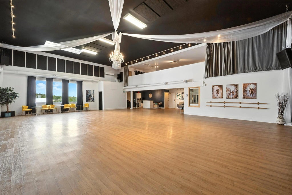 This like-new 7,000 sq. ft. commercial building presents a prime opportunity for recreational, special event, or wellness-focused businesses seeking a well-located space in Halifax’s continually expanding mainland commercial hub—Bayers Lake. Situated on a 16,543 sq. ft. lot with a level, paved parking area for 15 or more vehicles, the property offers excellent accessibility to Highways 102, 103, and downtown Halifax. Spanning four levels, the building features two expansive open-concept studio halls, two mezzanine levels overlooking the studios, and multiple flexible-use spaces that can be partitioned as needed to accommodate various business models and schedules. Designed with adaptability in mind, the space has hosted weddings, concerts, yoga, dance, and fitness classes, and offers the perfect environment for a wide range of services. The main level includes a large welcoming reception area accessed through double doors, a studio hall, kitchen, bathroom facilities, and a separate esthetician office. The second-floor mezzanine offers multiple office spaces and additional bathrooms, including one office with plumbing that previously served as a massage therapy space. The third level houses the largest studio hall, another office, and bathrooms, while the top floor features the final mezzanine space. Built with wood construction and impact-minimizing flooring, the building is equipped with in-floor heating, durable vinyl flooring throughout, an asphalt roof, a fireproofed northwest-facing wall, and a robust air-exchange system. This is an outstanding opportunity to launch or grow your business and be part of a vibrant and diverse commercial district. Building and land are for sale.
