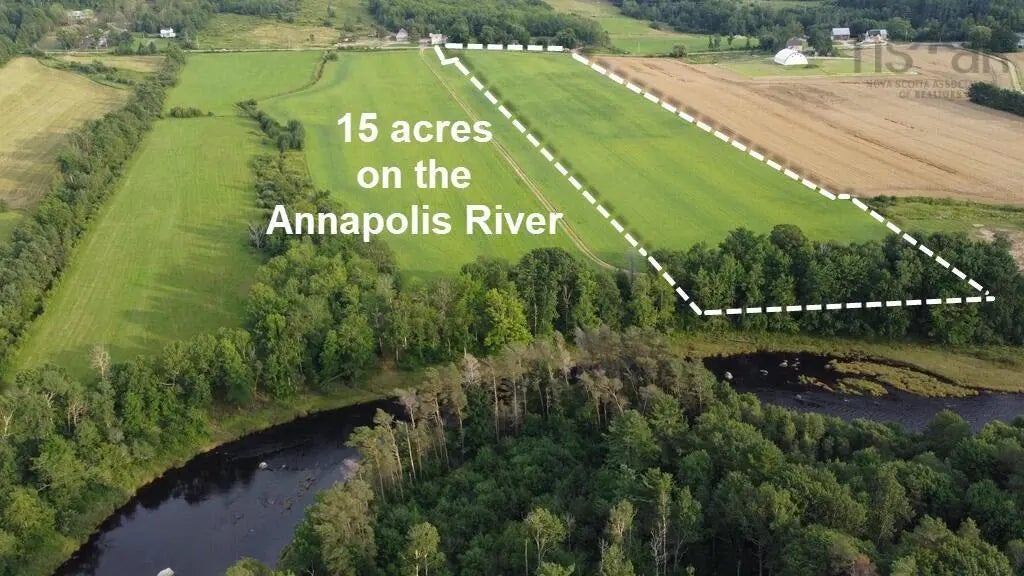 Here is an affordable, fully cleared 15 acre waterfront property on the Annapolis River. Rolling fields with over 450 feet of waterfront and approx. 370 feet of road front on Route 201 (Carleton Road). This is a well maintained paved road with highspeed fibre-op out front. The land is currently used for high production hayfields and the rich Annapolis Valley soil is ideal for a variety of crops from grapes, to fruit trees, wheat, corn, soybean & more. The land drains exceptionally well and has always been well maintained with crop rotation. Rising up from the river, this land commands attention with gorgeous vistas that will make your dream home build worth every penny invested. You won't need to worry about flooding here! This lot will be expanded to 15 acres with waterfront at seller's expense before closing (see sketch of new property lines). The AG (agricultural) zoning allows for farming and/or residential use and the property size and layout are ideal for your hobby farming or homesteading dreams. Or perhaps you have a business plan in mind . . . the possibilities here are very inviting! The scenic riverfront location offering stunning views in all directions, right here in the community of Paradise certainly lives up to its name! This part of the Annapolis River is ideal for kayaking, canoeing and fishing. On a recent paddling trip from Lawrencetown to Paradise, we saw eagles, Canada Geese, ducks, Kingfishers and even a beaver! You deserve to love where you live! The location is ideal - just minutes away from Middleton in one direction and Bridgetown in the other, with a local pub within walking distance (Lunn's Mill) and many amenities just down the road in Lawrencetown (library, restaurants, coffee shop, winery). See diagram of new property lines to be surveyed and subdivided before closing at seller's expense. *No HST on this sale.