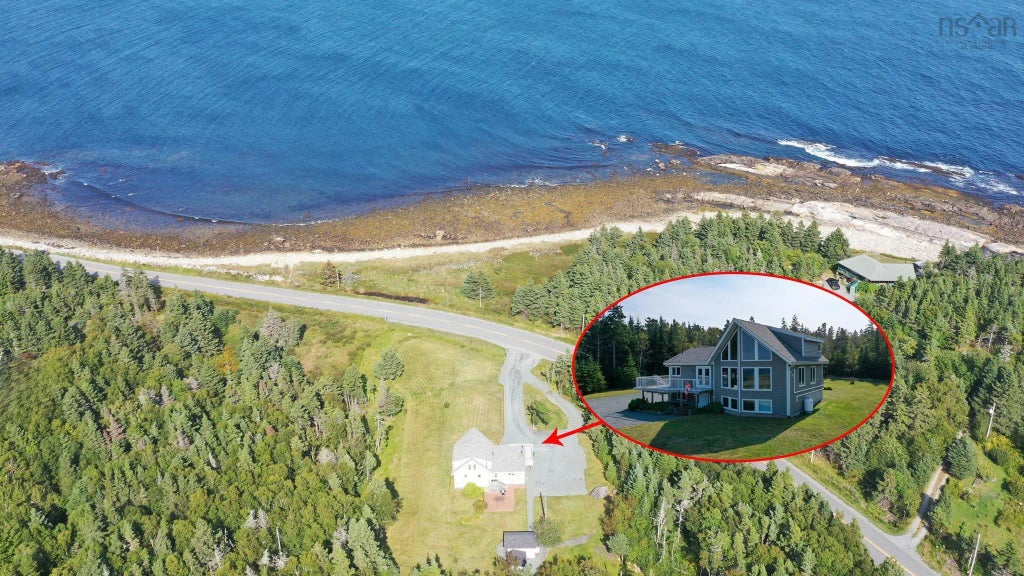 A wonderful opportunity awaits with this spacious property spanning over 2 acres, including a separate waterfront lot that ensures your ocean view remains protected, without the challenges often associated with direct waterfront ownership. Built 22 years ago by the original owners, the home has been exceptionally well constructed and lovingly maintained. Thoughtfully designed to make the most of its natural surroundings, the home features decks on both the front and back, allowing you to enjoy both morning sunrises and evening sunsets. The lower level, complete with a separate entrance, bedroom, bathroom, and living area, offers excellent potential for an in-law suite or private guest accommodation. Upstairs, the open-concept main living space seamlessly connects the kitchen, dining, and living areas, all framed by stunning double-height windows that flood the space with natural light and showcase the ocean views. Ideal for growing families or those looking to downsize in style, this versatile home provides peaceful, flexible living just minutes from the amenities of Liverpool. Radiant in-floor heating on the main and lower levels, two heat pumps, and a cozy propane fireplace ensure year-round comfort, even on the chilliest days.