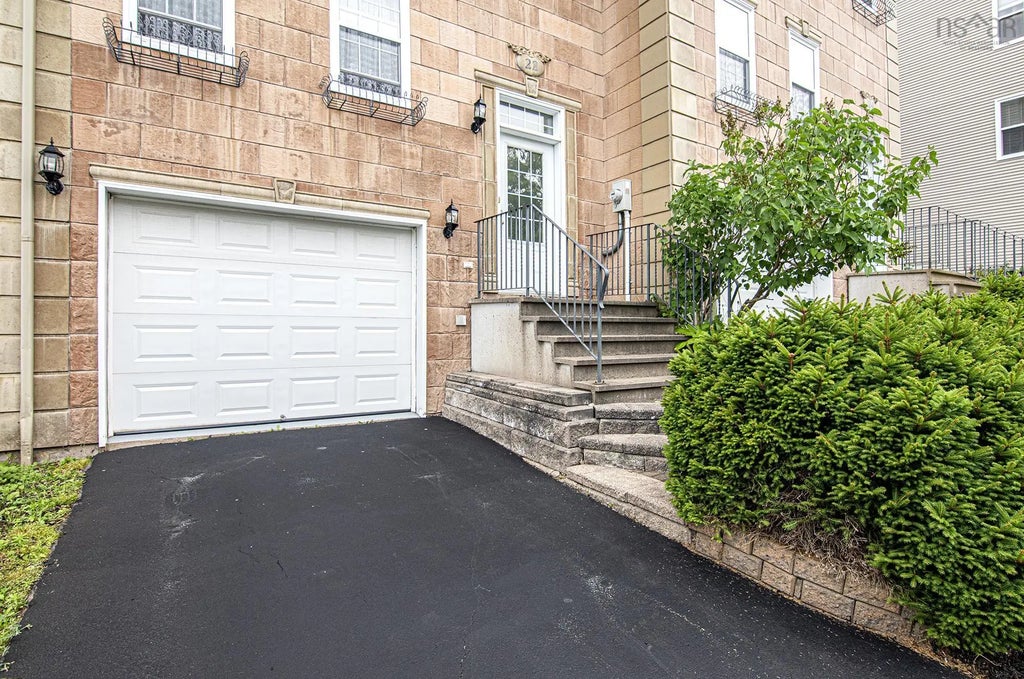 Welcome to modern living in Royal Hemlock, Halifax! This clean, bright, and freshly painted townhouse offers convenience and comfort. As you step inside, you'll immediately notice how well-maintained this home is. The welcoming entrance leads you to the main floor, featuring open-concept living spaces with hardwood floors throughout. The spacious living room flows seamlessly into the kitchen and dining area, which opens onto a good-sized deck overlooking a serene greenbelt. A convenient powder room completes the main level. Upstairs, you'll find a large primary suite with a walk-in closet and a full ensuite bathroom. Two additional well-proportioned bedrooms, a main bathroom, and a laundry room provide ample space and convenience. The downstairs area boasts a large recreation room with a walk-out to a private patio, a half bathroom, plenty of storage, and a single-car garage.