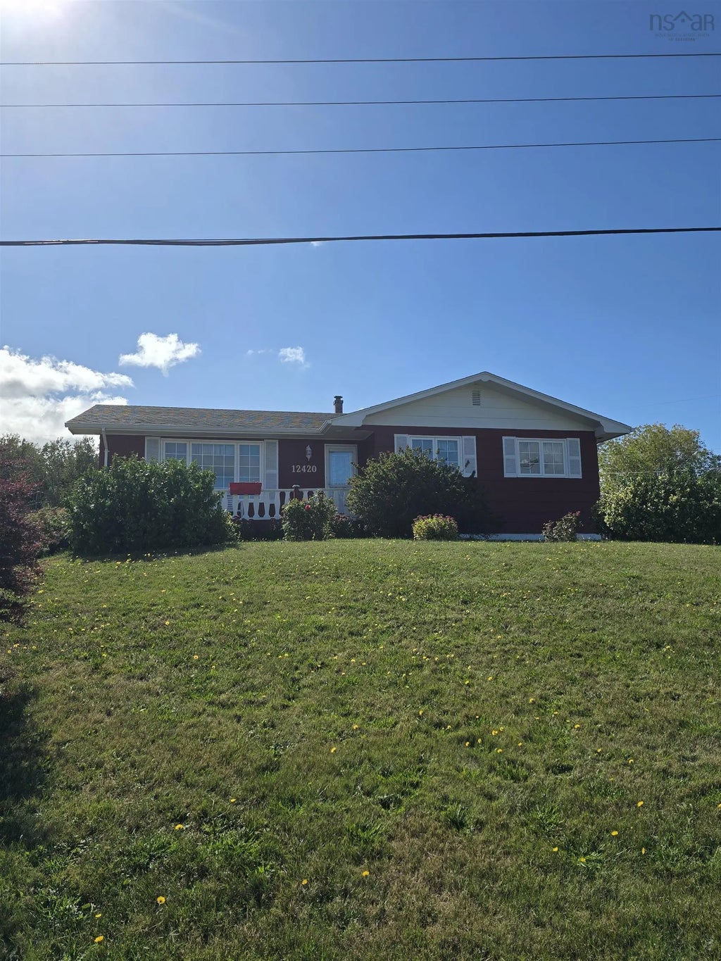 Perched on a hill in the tranquil village of Havre Boucher is this thoughtfully laid out bungalow with a beautiful view of St Georges Bay and Cape Breton Island. Upon entering you are in the mud room with convenient main floor laundry (new dryer). Large kitchen (new propane cook stove) faces the water and has generous eat in space for table and chairs and a hutch. Living room also faces the water and leads to the large wrap around deck where you can sit and easily watch your children at the playground across the street. In the lower level there is a big family room and a woodstove could be replaced if one wanted. A new propane heating system was installed by current owner. Also downstairs is an office and a storage room without a window. Roof is around 4 years old. Drilled well. Municipal sewer. Detached garage is wired and has new electric door. Driveway just freshly graveled. Room for raised veggie beds outback.