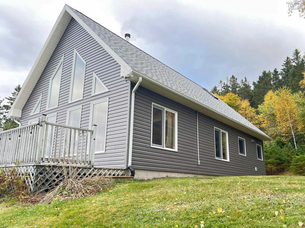 Relaxing and Rejuvenate Lake House in Irish Cove, located in a quiet No Exit Road, this beautiful Chalet setting in the hill with panoramic view watching over the Bras D’Or Lake, including two lots across the road with 357 feet of waterfrontage. This Chalet style offers great vistas from inside and out to enjoy the sunset and sunrise with magnificent color of Cape Breton. This well-maintained home is quality built, open concept, hardwood floors, and bright with many windows, including skylights in bed room and bath room upstairs. All high-quality Polytech windows, tilt and turn style of windows that can be opened at the top (tilt) and also open at the side (turn) like a door. This house is an energy efficient with three heat systems (register, ETS and Wood Stove), and Air Exchange system. There is a storage shed, chicken coop, Gazebo and a fruitful vegetable garden. The brook on the property provides a water source for the garden. This property is conveniently located between St. Peters and Sydney and is also 20 minutes to Ski Resort Ben Eoin, Marina and The Lakes Golf Course. This home is wired with a generator panel, Bell fast internet available. Enjoy your coffee in the morning with the beauty of Bras d’Or Lake and wild life, deer in your yards, bold eagles, crows and all kinds of small birds. New appliances and security camera are included. New roof shingles in 2023 and kitchen counter upgrade in 2025. Smart TV and furniture included.