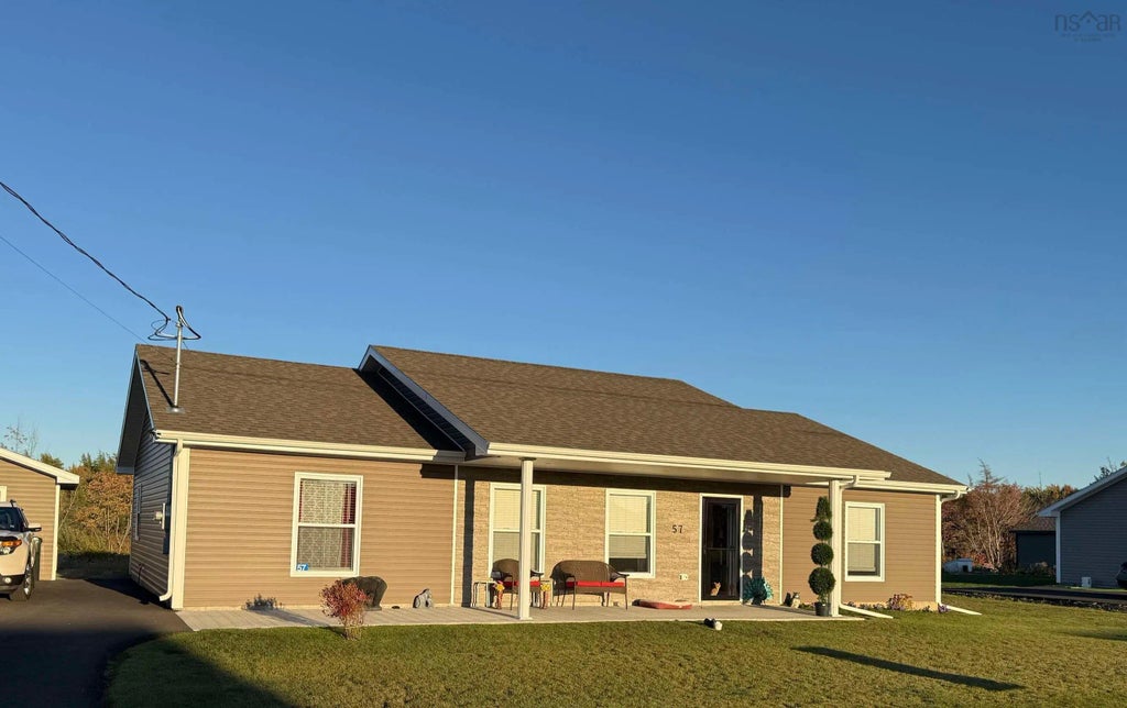 Welcome to 57 Michael Street, Modern Living in Cossitt Heights Step into this beautifully designed, near-new home in the Cossitt Heights subdivision. Built by Joneljim Construction, this residence combines modern style, thoughtful design, and everyday convenience, all in a prime location close to shopping, dining, schools, and healthcare. Inside, the bright open-concept layout is filled with natural light, creating a warm and inviting atmosphere. The professionally designed L-shaped kitchen features a spacious 7’ x 3’ island, abundant cabinetry, and generous counter space, perfect for cooking, entertaining, and gathering with family. The kitchen flows seamlessly into the living and dining areas, with direct access to a private concrete patio ideal for relaxing or hosting guests. This home offers three bedrooms and two bathrooms, including a primary suite complete with a walk-in closet and a luxurious ensuite. The additional bedrooms feature large closets, providing plenty of storage for the whole family. With single-level living, comfort and accessibility come standard. Efficiency meets convenience with a ducted heat pump and air exchanger for year-round climate control. A paved double driveway offers ample parking, and the 12’ x 16’ storage shed provides even more functionality for your lifestyle. Located just minutes from shopping centers, fine dining, Cape Breton Regional Hospital, and Cape Breton University, this property offers everything you need within easy reach without sacrificing peace and comfort at home. Don’t miss the opportunity to make this beautifully crafted home in Cossitt Heights your own.